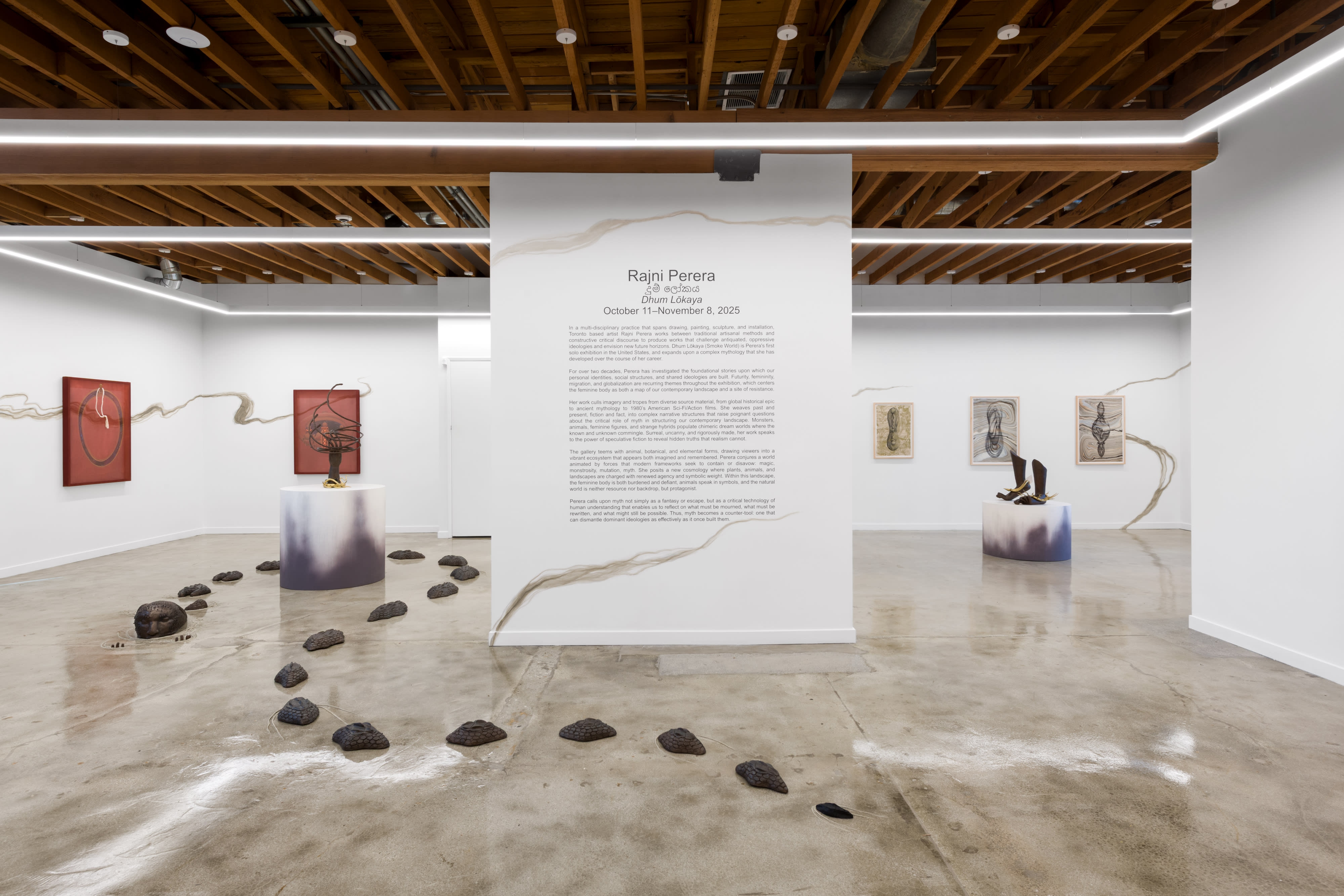 On a quiet Saturday morning, I drove across the city to Rajiv Menon Contemporary to see Dhum Lōkaya (Smoke World), a solo exhibition by Rajni Perera—an artist whose name I’d been hearing more and more in global art circles. Born in Dehiwela, Sri Lanka, and now based in Toronto, Perera has shown across the world, from the PHI Foundation in Montreal to the Museum of Contemporary Art in Lyon, and even the UAE’s Sharjah Biennial. This marks her first solo exhibition in the United States—a milestone that feels especially significant for those of us in the diaspora, seeing her work arrive in Los Angeles, a city built on migration and reinvention.