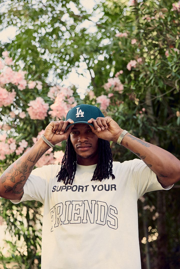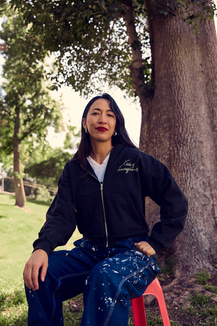 Founded in 2016 by Weleh and Daniel (and unofficially founded in 2015 in Daniel’s living room), Kids of Immigrants began as a clothing brand that donated profits to organizations that helped Los Angeles. The two creatives started this journey by visiting thrift stores, selecting pieces, and hand-painting them. Debbie later came on board after working as a stylist and touring with Kehlani. What began as a clothing brand boldly stamped with the word ‘Immigrants’ has grown into a movement for representation. Daniel points to the moment Weleh transformed his own relationship with the word: “We don’t run away from the word immigrant, we run toward it and run with it.”