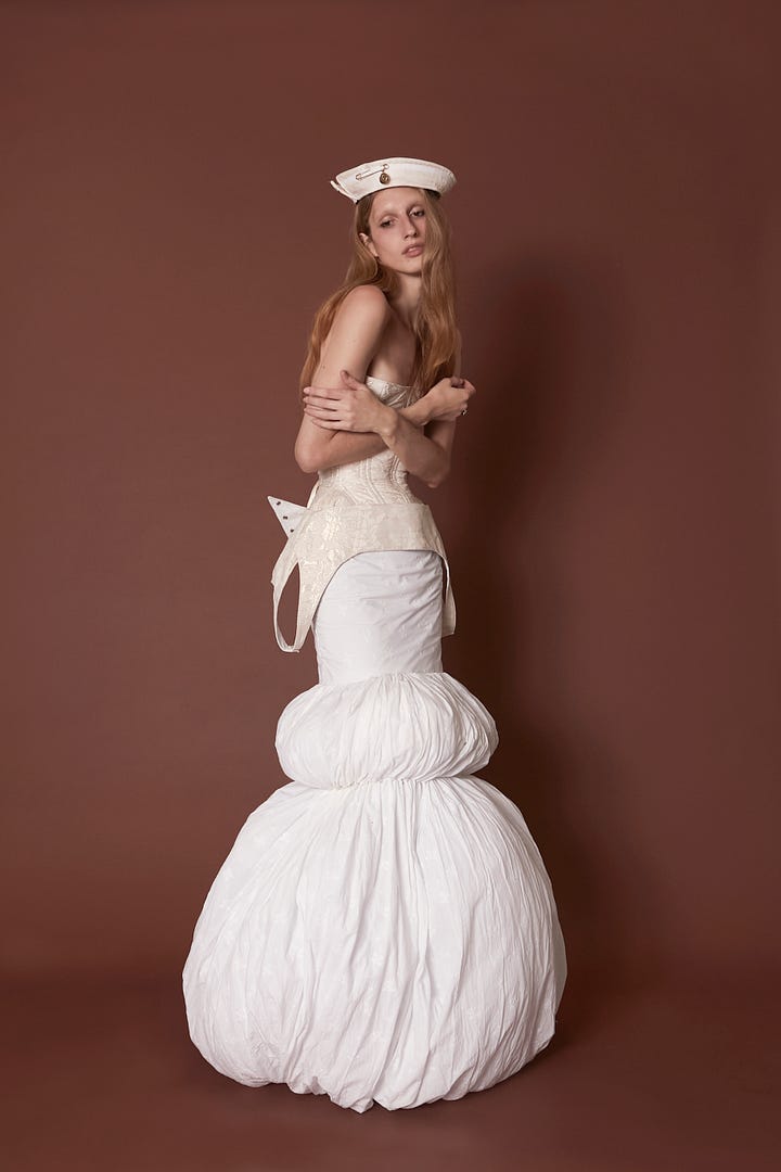 Last summer, she spent some time in Vienna (where her dad is from) in nature and looking at the architecture. “I loved looking at all the buildings everywhere, like the regular apartment buildings or the apartment that I was staying in. The way that the door is framed. I love small details,” Erik said softly, framed by the white fireplace that doubles as a backdrop for her Instagram. A classic setting against which her avant-garde designs stand out. “I have this attention to detail that also comes in the form of my inspiration.”