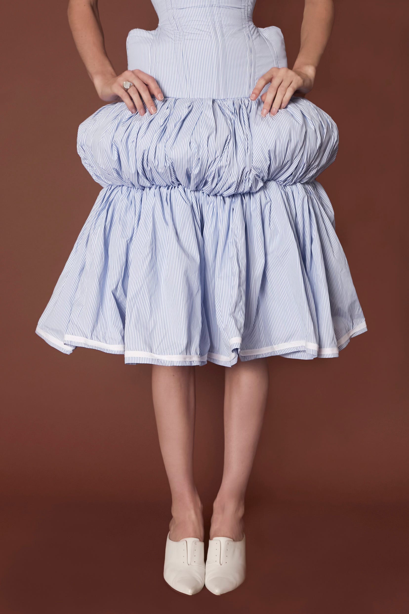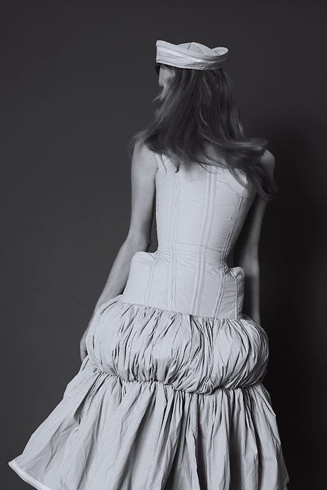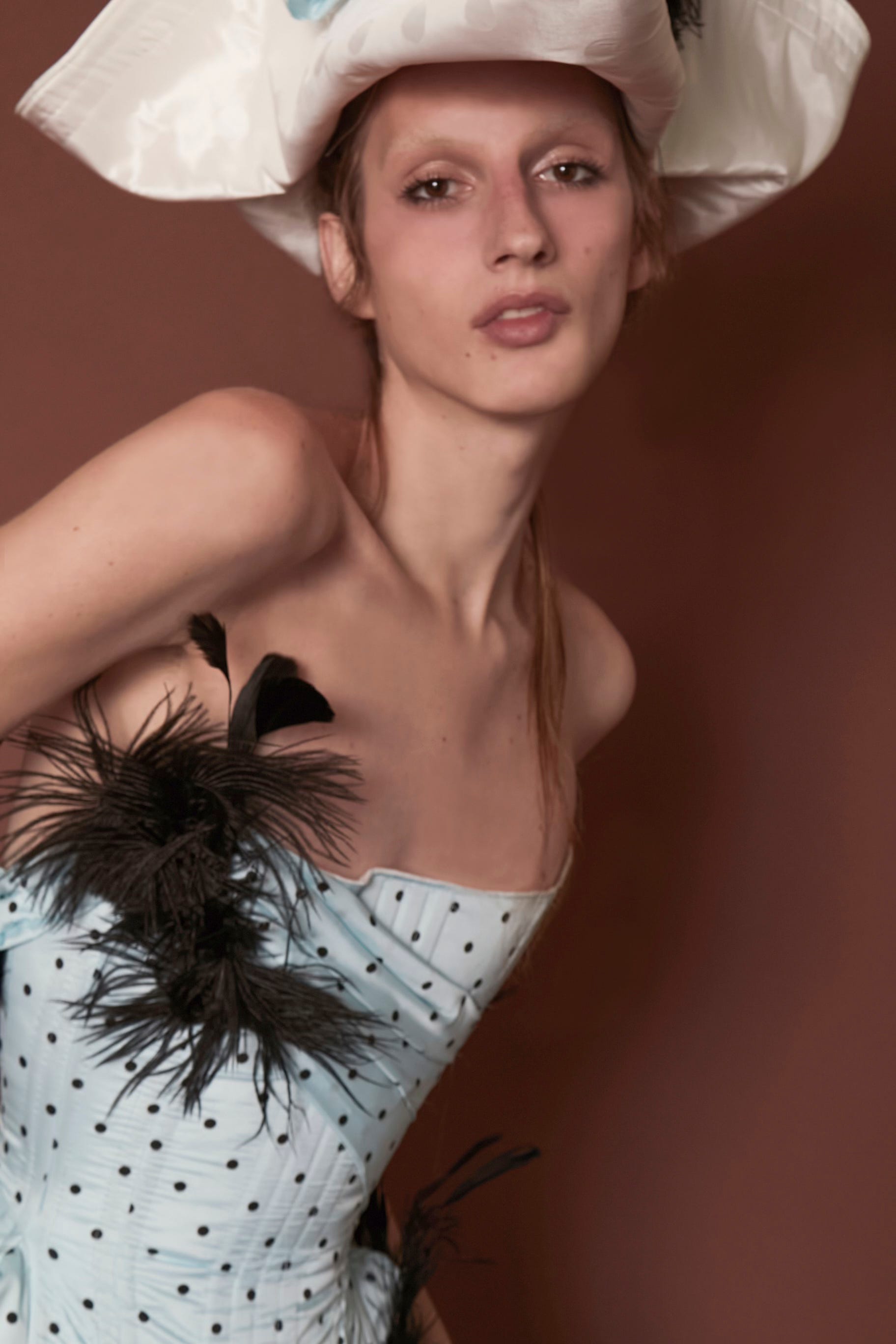Erik Charlotte, the eponymous women’s wear house, is rooted in fantastical escapism. It’s her creation that exists in a whole other universe away from ours — where everything’s puffy and cinched and has a weird design language inspired by door and drawer handles, alcoves, and doorways.
